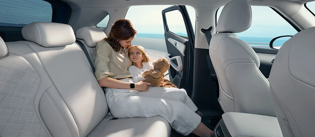 Los asientos delanteros ofrecen un confort excepcional, con ajuste electrónico en seis direcciones y reposacabezas regulables. Los pasajeros traseros también son atendidos con cuidado, gracias a los asientos regulables que garantizan que todos disfruten del viaje.